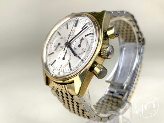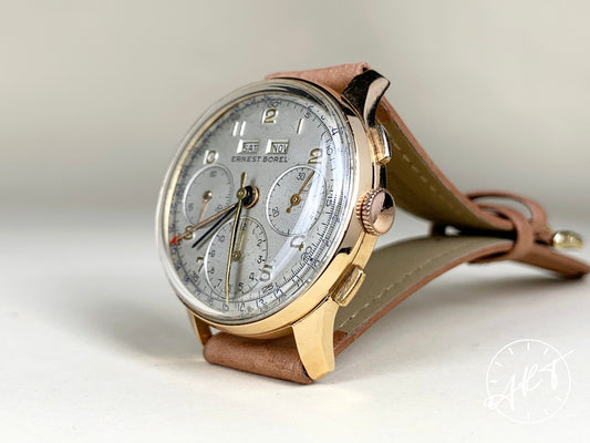 Vintage Ernest Borel Datora Val 72 Triple Date Chrono Silver Dial 18K RG Watch