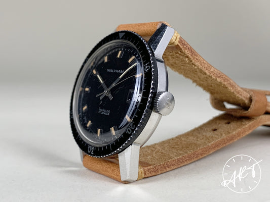 Vintage Waltham 17 Jewels Black T Dial Stainless Steel Manual Wind Watch