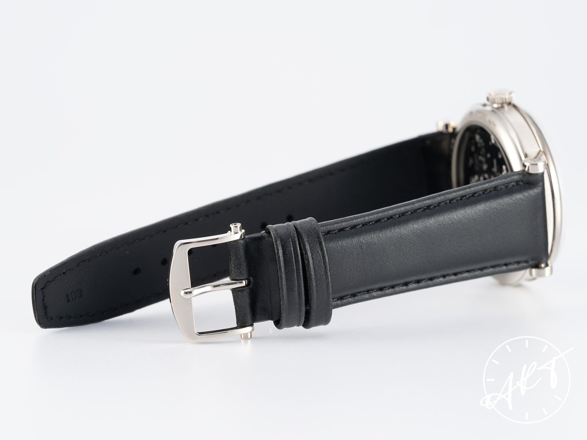 - New generic black leather strap + original tang buckle