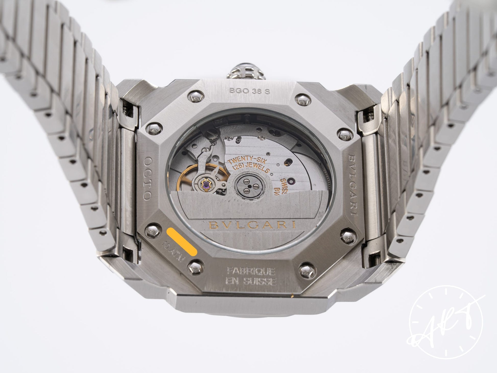 Bvlgari Octo Solotempo 38 Black Dial Stainless Steel Auto Watch BGO 38 S w/ B&P