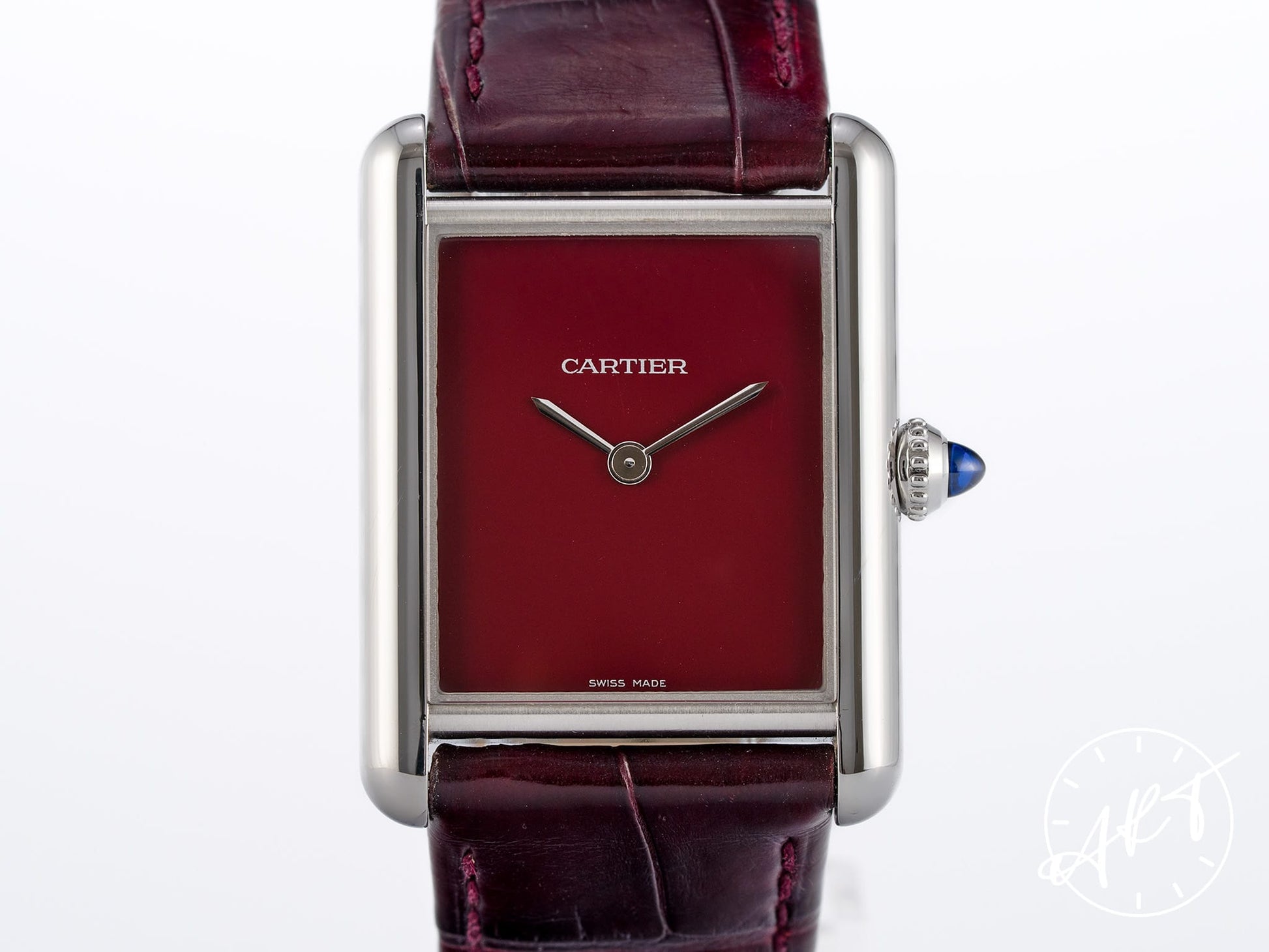 Cartier Tank Must de Cartier Large Claret Red Lacquer Dial SS Quartz Watch WSTA0054 w/Box