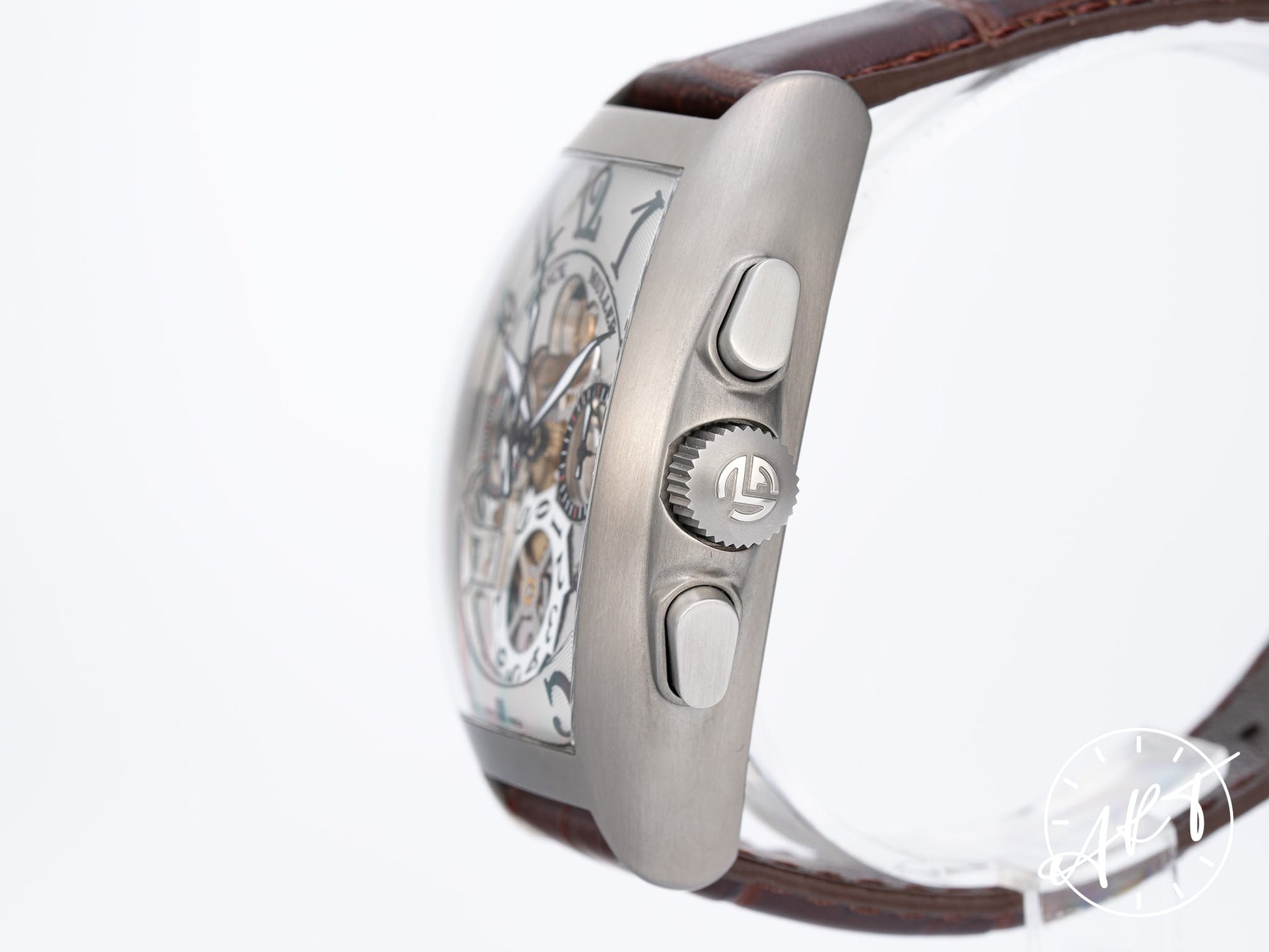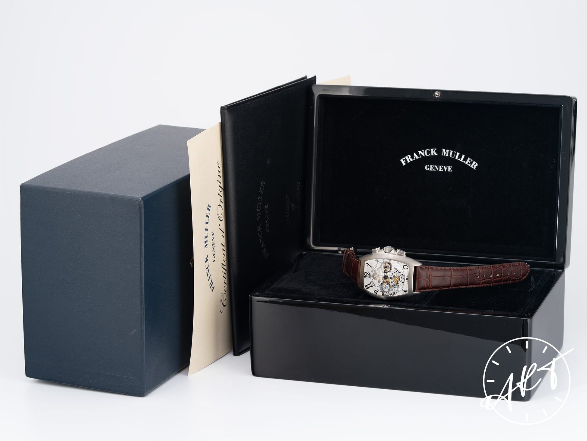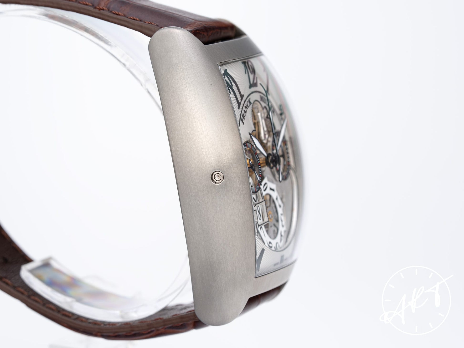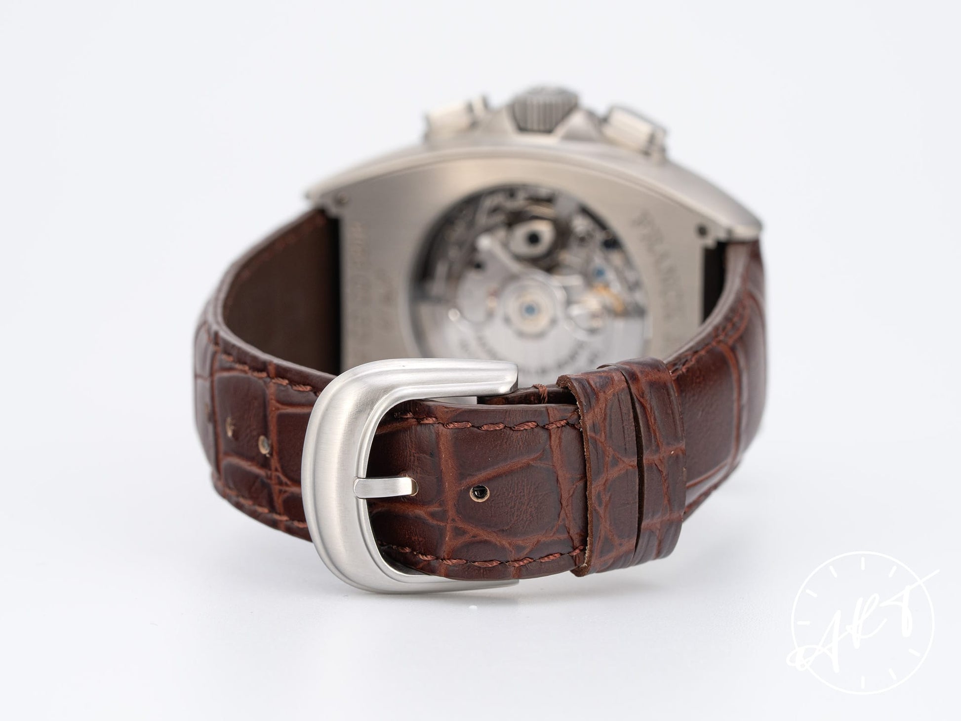 Franck Muller Cintrée Curvex Chrono Grande Date Silver Skeleton Dial SS Watch 8083 BP