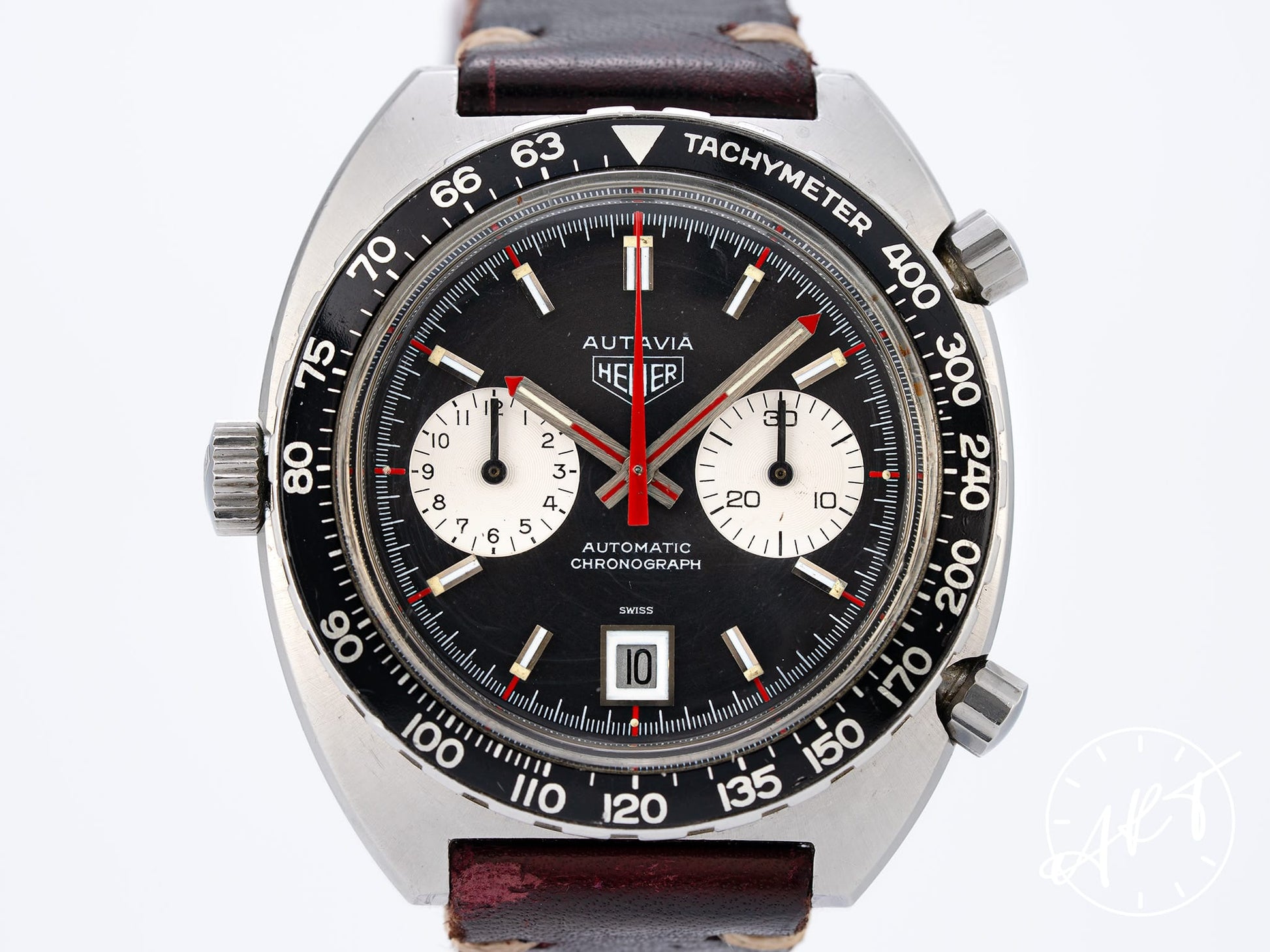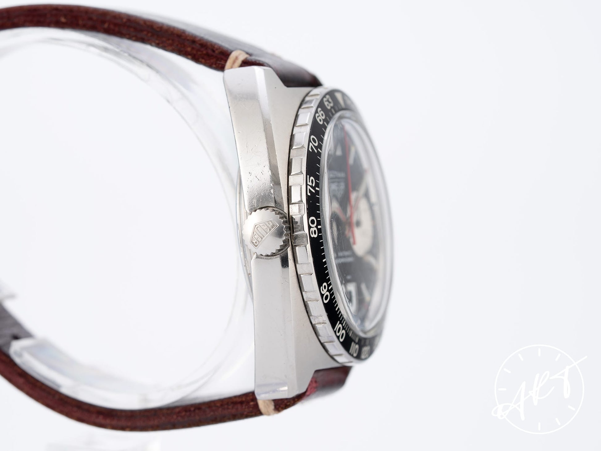 Vintage Heuer Autavia Chronograph Reverse Panda Dial SS Auto Watch 1163