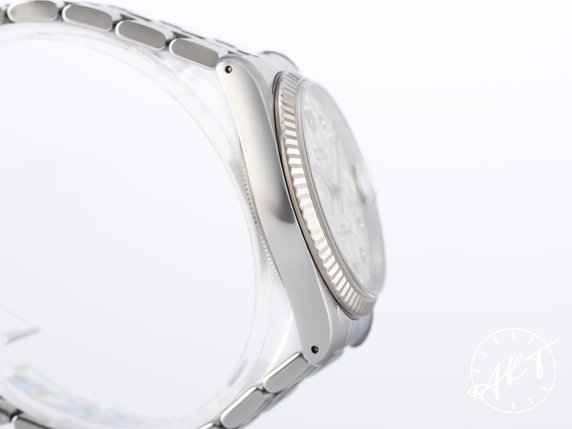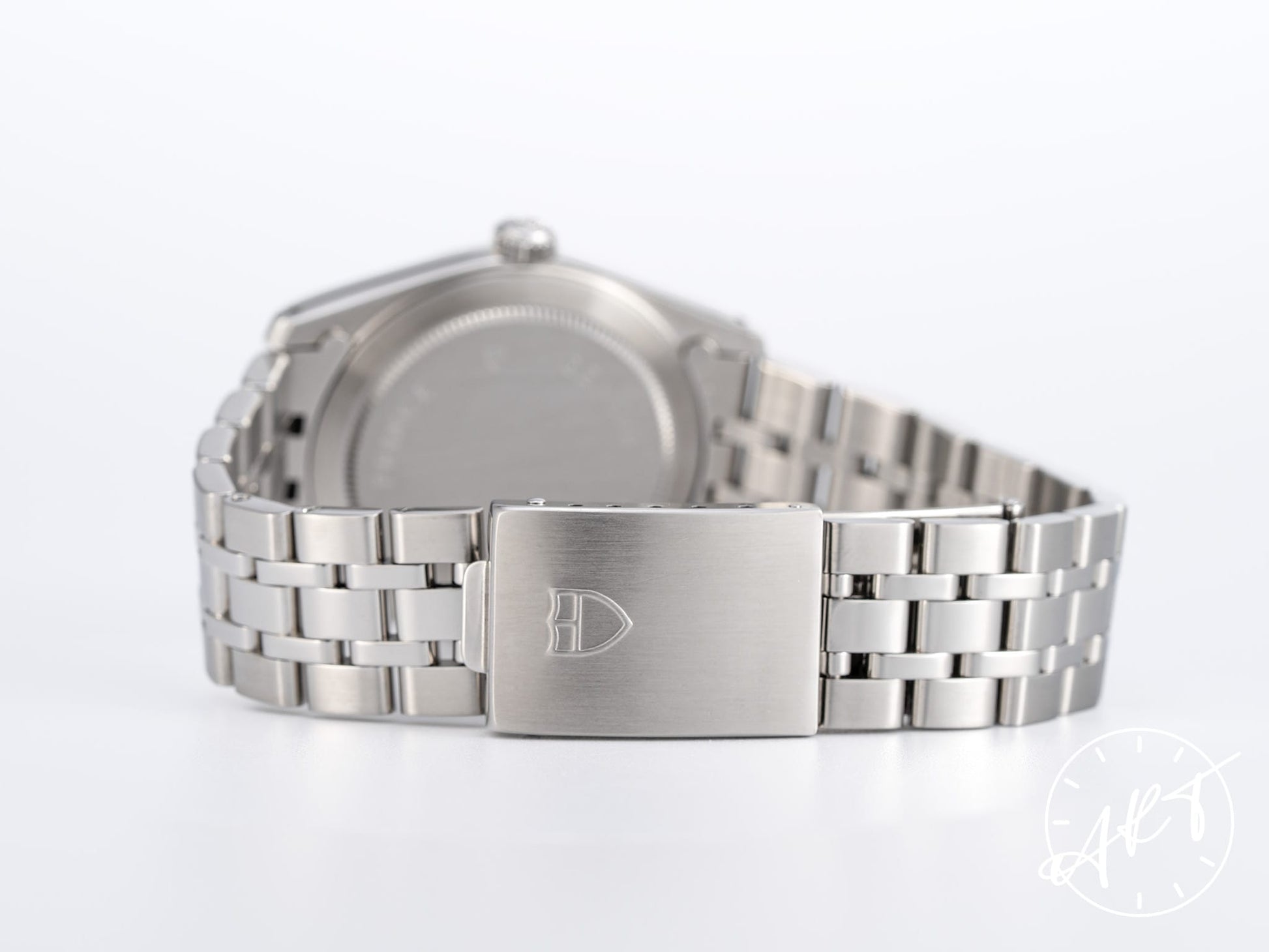 Tudor Prince Date Silver Linen Diamond Dial 18K WG & SS Auto Watch 74034