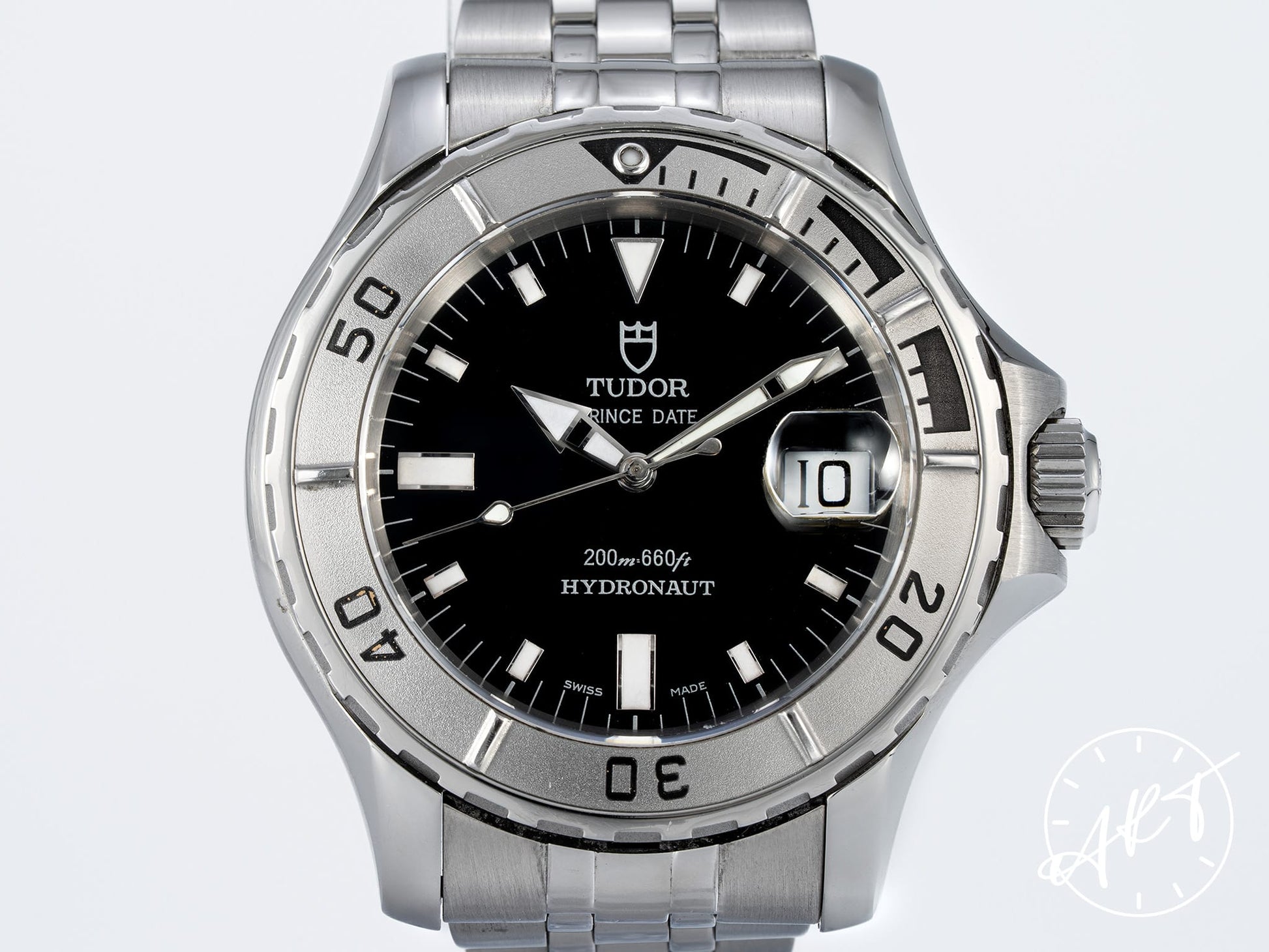 Tudor Prince Date Hydronaut Black Dial SS Auto Diver Watch 89190P w/ B&P