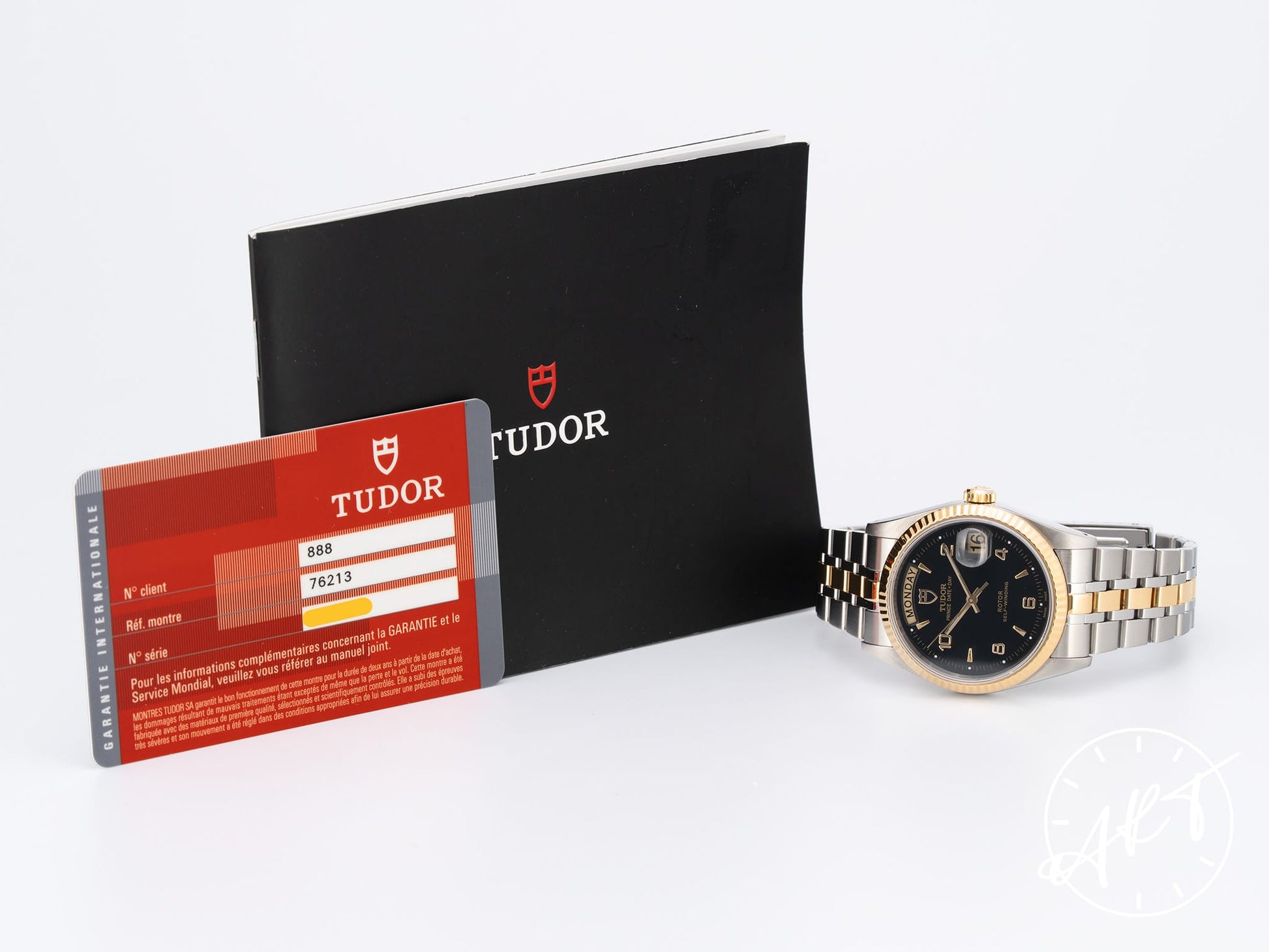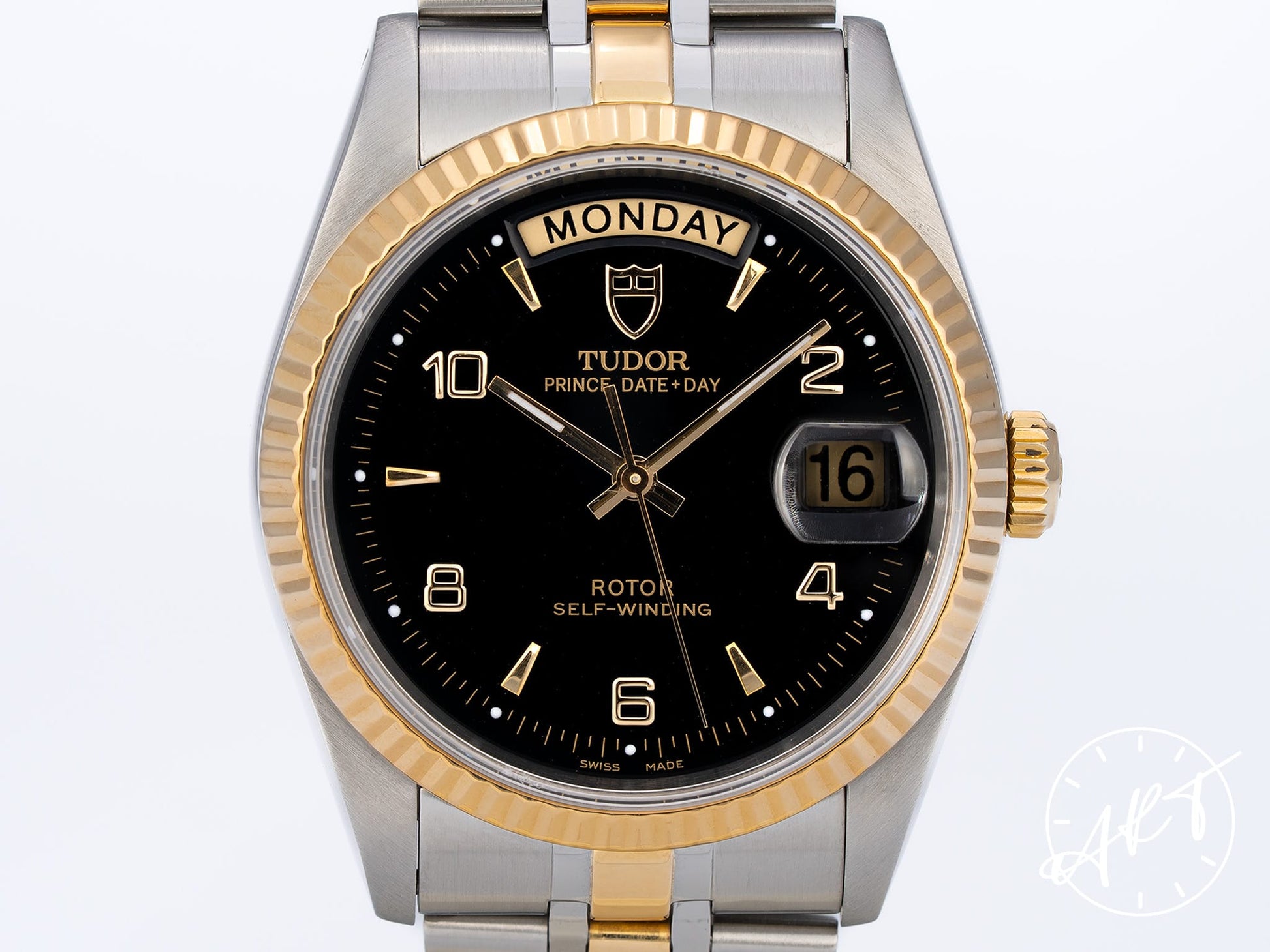 Tudor Prince Day-Date Black Arabic Dial 18K Gold & SS Watch 76213 w/ Papers