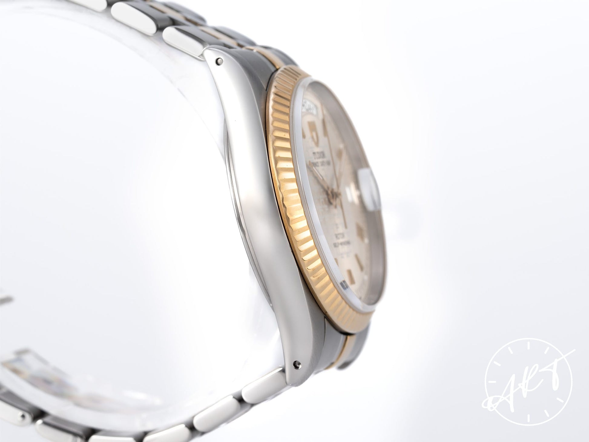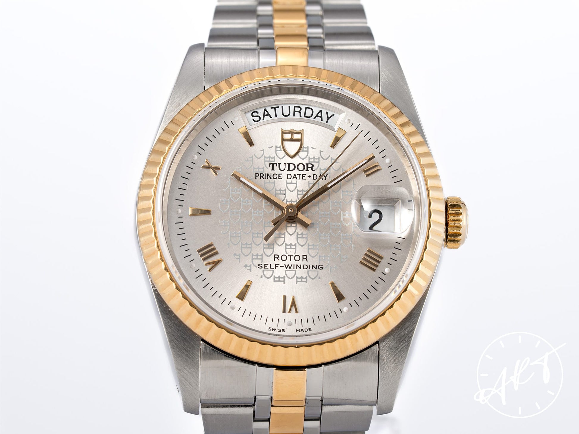 Tudor Prince Day-Date Silver Logo Dial 18K Gold & SS 50th Anniv Watch 76213 w/ Paper