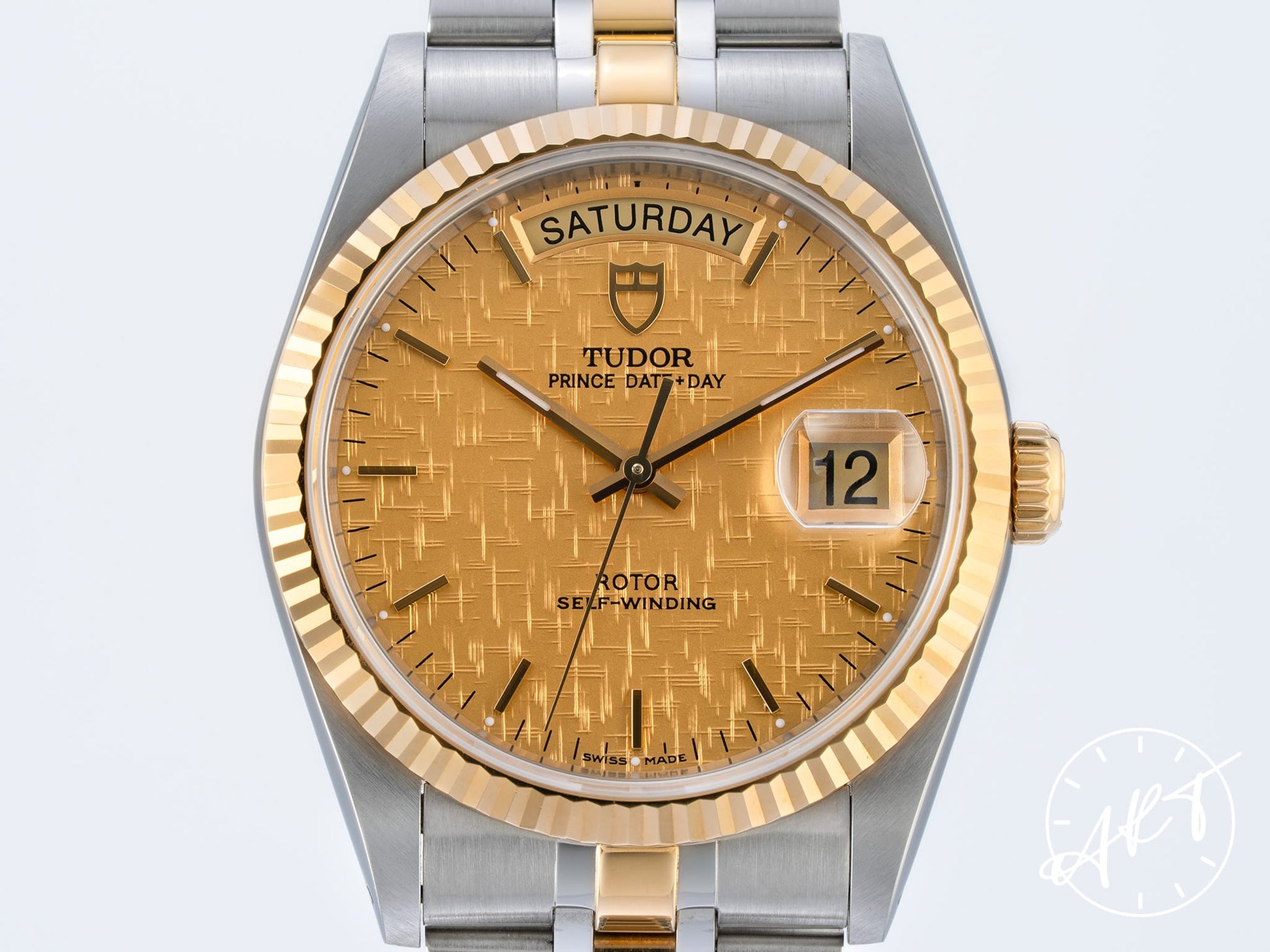 Tudor Prince Day-Date Gold Linen Dial 18K Gold & SS Watch 76213 BP