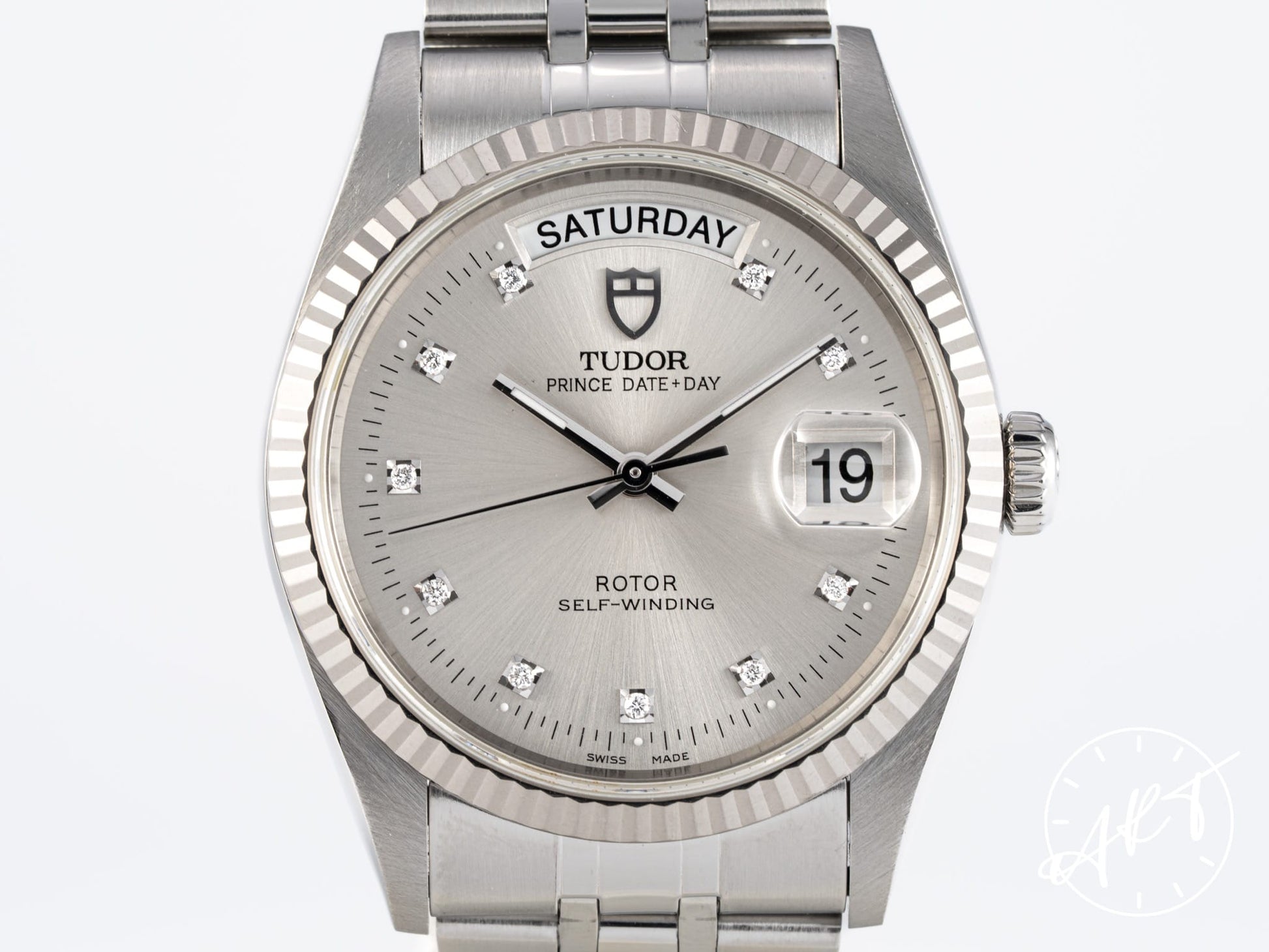 Tudor Prince Day-Date Silver Diamond Dial 18K WG & SS Watch 76214 BP + Receipt